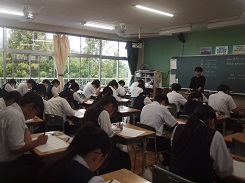 多くの若手教員が参観する中、来校した先生方の研修の成果が上がるよう、生徒たちは皆、緊張を克服して、活発に議論をしました。
