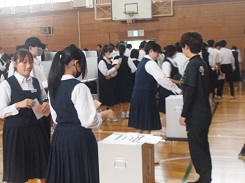 ※現在、学校ではトイレ改修工事を行っています。 そのため、学校敷地内への車の乗り入れをご遠慮いただいております。 なお、保健室へのお迎え等、緊急の場合には、正門(西側)よりお入りいただき、 生徒昇降口正面に駐車いただきますようお願いいたします。