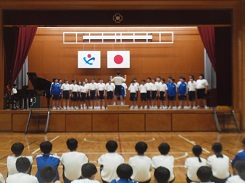 3 現在 生命の一瞬に みなぎる意志と 力あり 研鑽尽きせぬ 道程を 三年に托す 友と我れ 深く心を 求めよと ああ上柴 上柴中学校