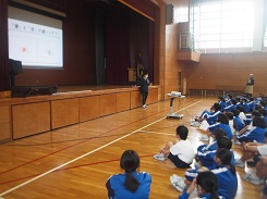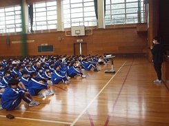 大きな声で挨拶をして心と体をほぐした後、校歌を歌いました。