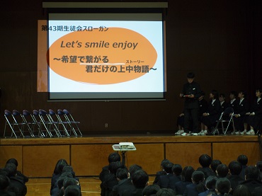 生徒会本部役員の引き継ぎ式・所信表明が行われました。