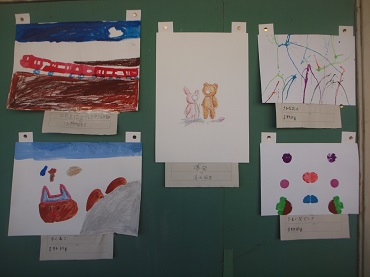 けやき学級の生徒の美術作品が、けやき学級の教室廊下に展示されています。
