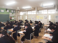 生徒たちは皆、日頃の学習の成果を発揮しようと、時間いっぱい問題に取り組んでいました。