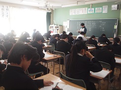 26日(月)進路検討委員会 27日(火)効率高校出願日 28日(水) 29日(木)スキー教室1日目(1年生・菅平高原) 社会科ゲストティーチャーによる授業(3年) 30日(金)スキー教室2日目(1年生・菅平高原)
