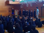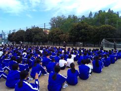 転出した職員がひとり一人お別れの言葉を述べ、最後に2・3年生で校歌を斉唱しました。