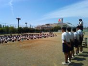 天候の悪化が懸念されたため、当初予定されていた吹奏楽部の演奏は楽器保護のため中止になりましたが、部活動の練習を中断して機敏に集合・整列し、