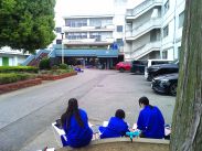 強い地震の後、火災が起こった想定のもと、避難訓練を行いました。