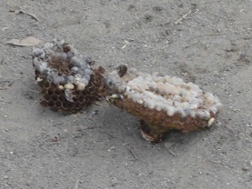 下の写真はおまけです。2学期に入って、グランドにいると、どうも何匹かスズメバチが飛んでいるのが気になりました。昨日は蛭田先生と