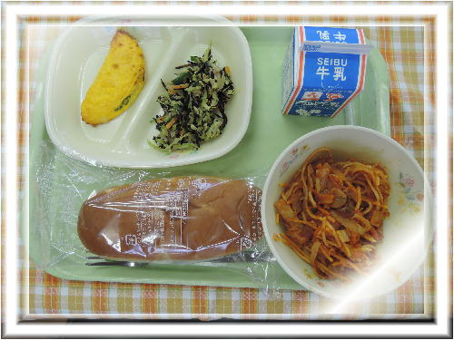 牛乳 パインパン スパゲティナポリタン オムレツ ツナとひじきのサラダ