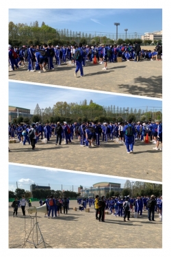 9日(木)対面式    10日(金)写真撮影・部活動説明会・給食開始    11日(土)    12日(日)     13日(月)3時間授業(給食なし)    14日(火)授業開始    15日(水)生徒会専門委員会    16日(木)    17日(金)離任式(特別日課)