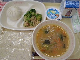 きょうは3年生を送る会が実施されることもあり、リクエストが多かった「ごま味噌ラーメン」を実施しました。ブロッコリーサラダは地元のブロッコリーをたくさんゆでて、手作りドレッシングにレモン果汁を加えてさっぱりとしたサラダができあがりました。