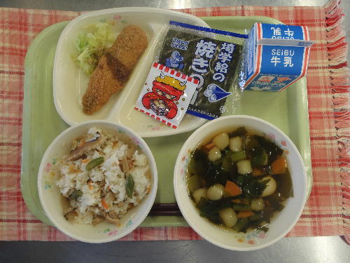 牛乳 恵方巻き イワシフライ すまし汁 福豆