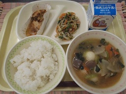 11月に入り、急に寒くなってきました。今月は「彩の国給食月間」で地場産の野菜や郷土料理を給食で紹介します。きょうは深谷市の偉人「畠山重忠」にちなんだ「重忠汁」と深谷ねぎをたっぷり使ったナムルでした。カゼをひかないように過ごしましょう。
