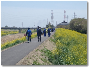 今日、地域の方から、『とっても嬉しい、何とも言えないいい話』を聞きました。その話というのは4/20土曜日の20kハイクの日の話です。菜の花がいっぱい咲いた小山川沿いをみんなで歩いているときに、誰が歌い始めたかわかりませんが、誰かが、「菜の花畑に入り日薄れ~、」と、あの有名な『おぼろ月夜』という歌の一節を歌い始めたんだそうです。 その後、その歌を歌う人が一人増え、二人増え、そこにいるみんなの大合唱になったそうです。最後には、校歌もみんなで歌い始め、何とも言えない、すがすがしい、気持ちのいい雰囲気に周りが包まれたんだそうです。
