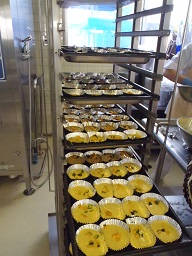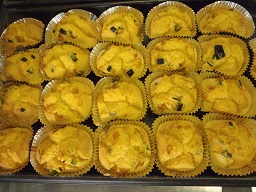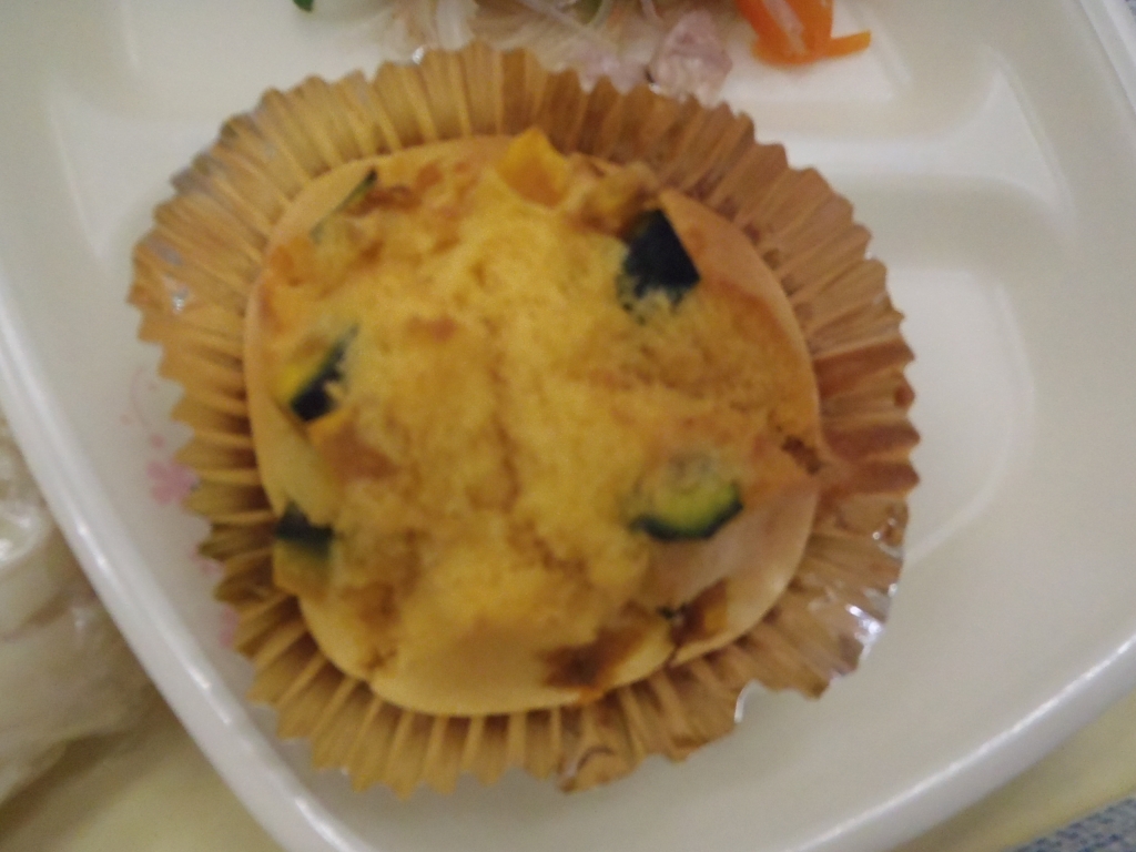きょうはかぼちゃのケーキを焼きました。調理員さんにかぼちゃを小さくカットしていただいたので皮ごと食べられるかわいらしいカップケーキができ上がりました。