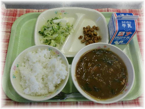 手作りスピナッチカレーは小麦粉からカレールウを作りました。玉葱は1時間、アメ色になるまで炒めました。深谷特産の「ほうれん草」を使ったカレーです。残りもなく、おいしくいただきました。