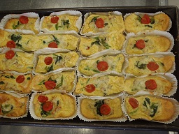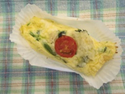 ☆ステンドグラスキッシュ風・・・視察に訪れたフランス料理のキッシュを給食風にアレンジしています。東京の「青淵文庫」に残されている色鮮やかなステンドグラスをイメージしています。