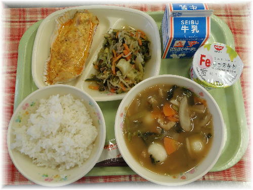 だんご汁 野菜の中華炒め ヨーグルト