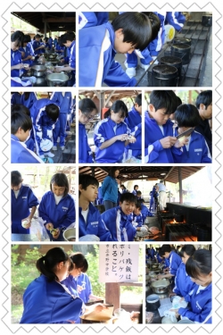 慣れない手つきで包丁を握り、薪に火をつけるのに苦労しながらも頑張っています