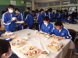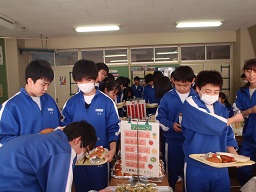 ☆中学校生活終了間近に、とてもおいしい給食を食べることができました。高校に入ると、もう給食は食べることができません。本日は僕達のためにバイキングを行ってくださりありがとうございました。
