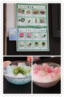 思わず清水寺境内で茶屋に寄ってかき氷を食べています。