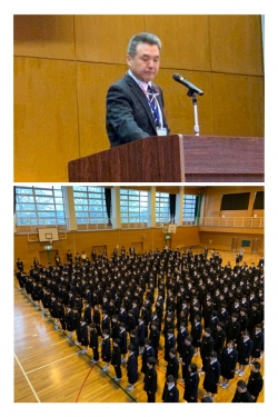 新しく着任された校長先生のお話で1学期の始業式が開式しました。