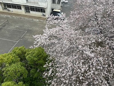 1年生の先生たちが「4階から見る桜がきれい」ということで、4階に行ってみました。