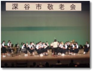 9/27(金)に上柴地区の敬老会が、深谷市民文化会館で13:30~開かれました。本校からは演芸の部(アトラクション)で吹奏楽が参加し、敬老の方々に5曲、披露しました。本校の発表の前には上柴西幼稚園児による、何ともかわいい、歌と踊りの披露もありました。敬老の方々には、癒された時間になっていただければ幸いです。
