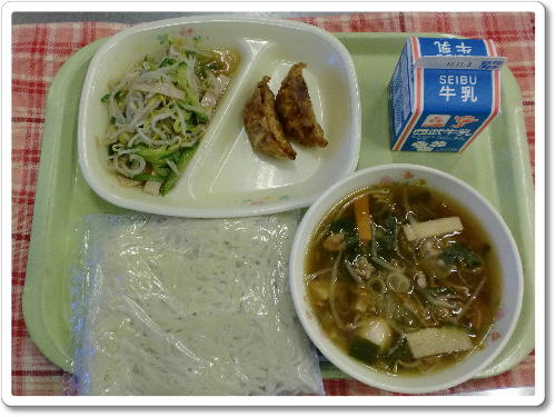 牛乳 広東麺 揚げ餃子 もやしのナムル