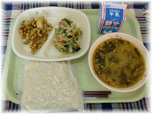 牛乳 担々麺 大豆とポテトの揚げ煮 深谷ねぎのナムル