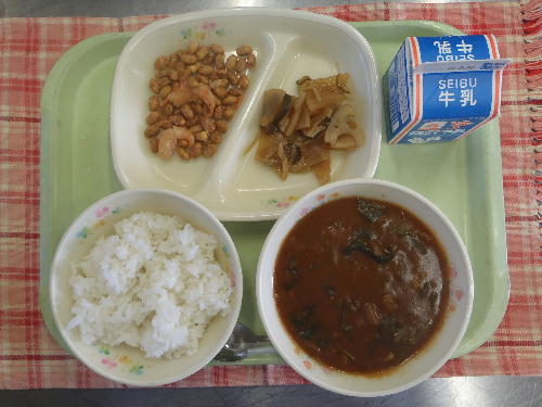 31日(金)の給食「手作りスピナッチカレーライス」