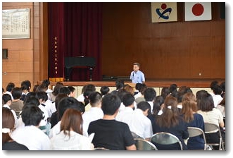 7月13日(土)2校時目に、3年生を対象の第一回進路説明会が開かれました。生徒はしっかりと自分自身のことと捉え、真剣に耳を傾けました。