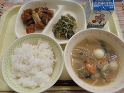 きょうの献立は深谷市をイメージして考えられた献立です。桜ヶ丘小学校が実際に埼玉県のコンクールで入賞した献立です。地元のねぎがたっぷり使われているとてもよい献立ですので本校でも実施させていただきました。