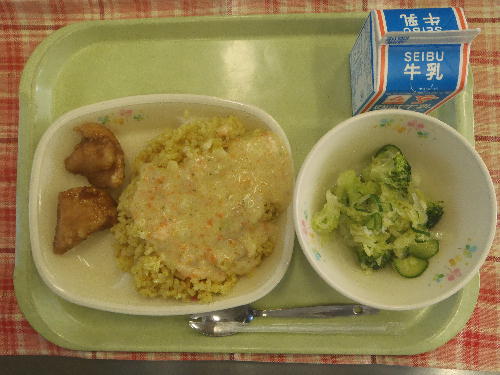 牛乳 カレーピラフドリア風 鶏肉のレモン煮 グリーンサラダ