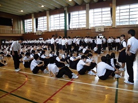 行われました。グランド状態が不良だったため、あえて、今回は避難場所を体育館にしてみました。学活中でしたが、