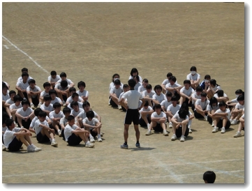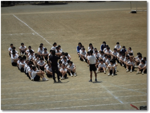 本日、午前中、校長室で、明日の部活動懇談会でのあいさつ文を考えていると、外から元気な生徒の声が聞こえてきました。校長室から見てみると、体育の授業の集団行動で、大きなかけ声に合わせて、生徒が集団走をしていました。それはよくある風景ですが、その20分後くらいに、今度は、生徒の声で、『頑張れ!頑張れ!』という大きな声が聞こえてきました。いったい何をやっているのかと、見てみると、