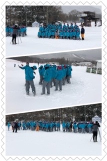 ウェアに着替え、ゲレンデで集合写真の撮影です!