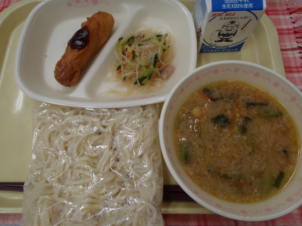 生徒の皆さんに人気の「ごま味噌ラーメン」です。急な雪で給食室内が冷え切ってスープが煮立つのに時間がかかっていましたが、無事にできあがりました。