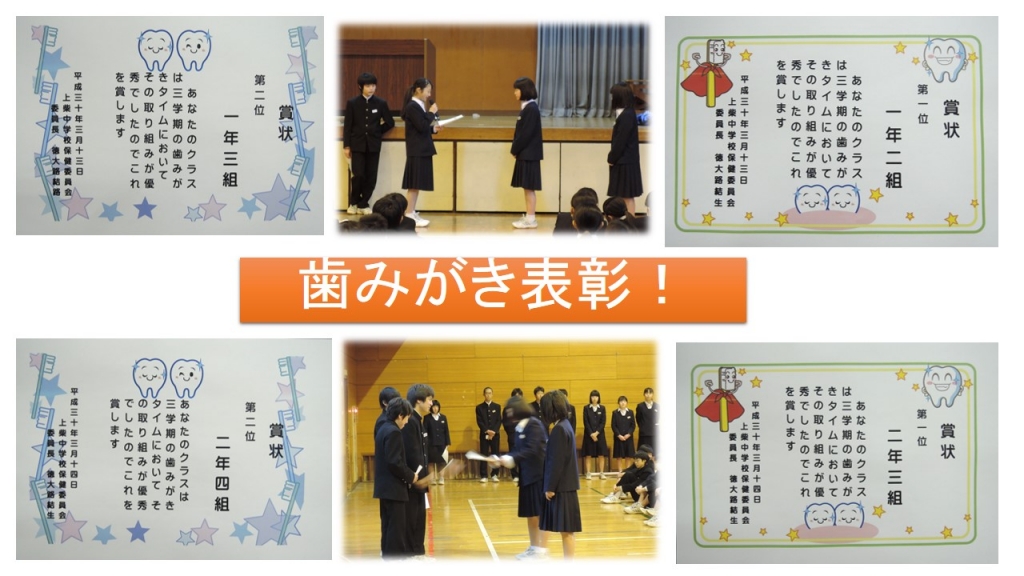 行った結果、みがけた人の割合が多かったクラスを表彰しました!