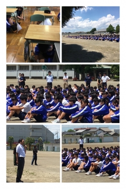 避難訓練を行いました。地震発生後理科室から出火したという想定で訓練をしました。避難完了時間は3分ほどと早めに避難ができましたが、少々しゃべり声が聞こえたり真剣さに欠けていたのが残念です。