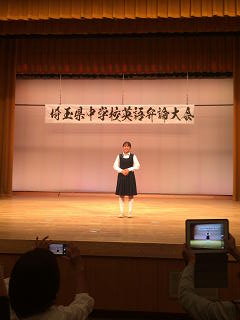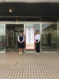 先日、大山くん、下山さんが英語弁論大会大里地区予選会に出場しました。2人とも練習の成果を発揮し、すばらしい発表をしました。大里予選会では、下山さんが第2位に入賞し、県大会に出場しました。県大会では、堂々と発表することができました。