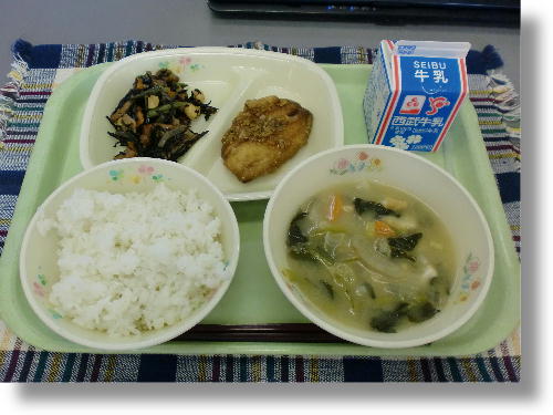 牛乳 ごはん あじの南蛮漬け 大豆の磯煮 野菜椀