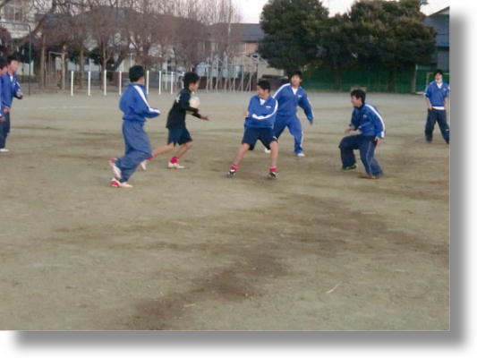 僕たちラグビー部は、大会に向けて冬の厳しい練習に取り組んでいます。春の関東大会と夏の学総では、部員18人一丸となって優勝目指し、頑張っていきたいです。