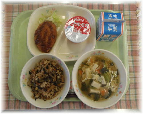 牛乳 ひじきご飯 コロッケ きゃべつ