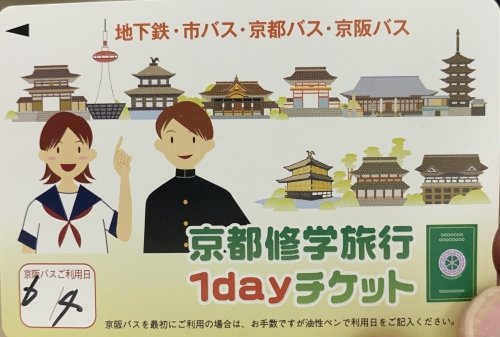 2日目の班別行動ではバス・地下鉄乗り放題切符が配布されています。京都市内を網の目のように張り巡らされている交通網を駆使して目的地に向かいます。