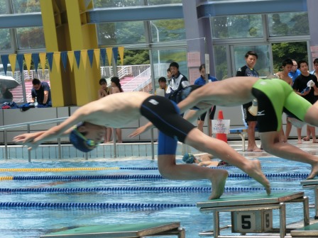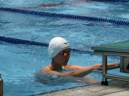 本校は、水泳部がなく各々で練習しています。初めて生徒が泳いでいる姿をみて、日々絶え間ぬ努力をしているんだと感じました。