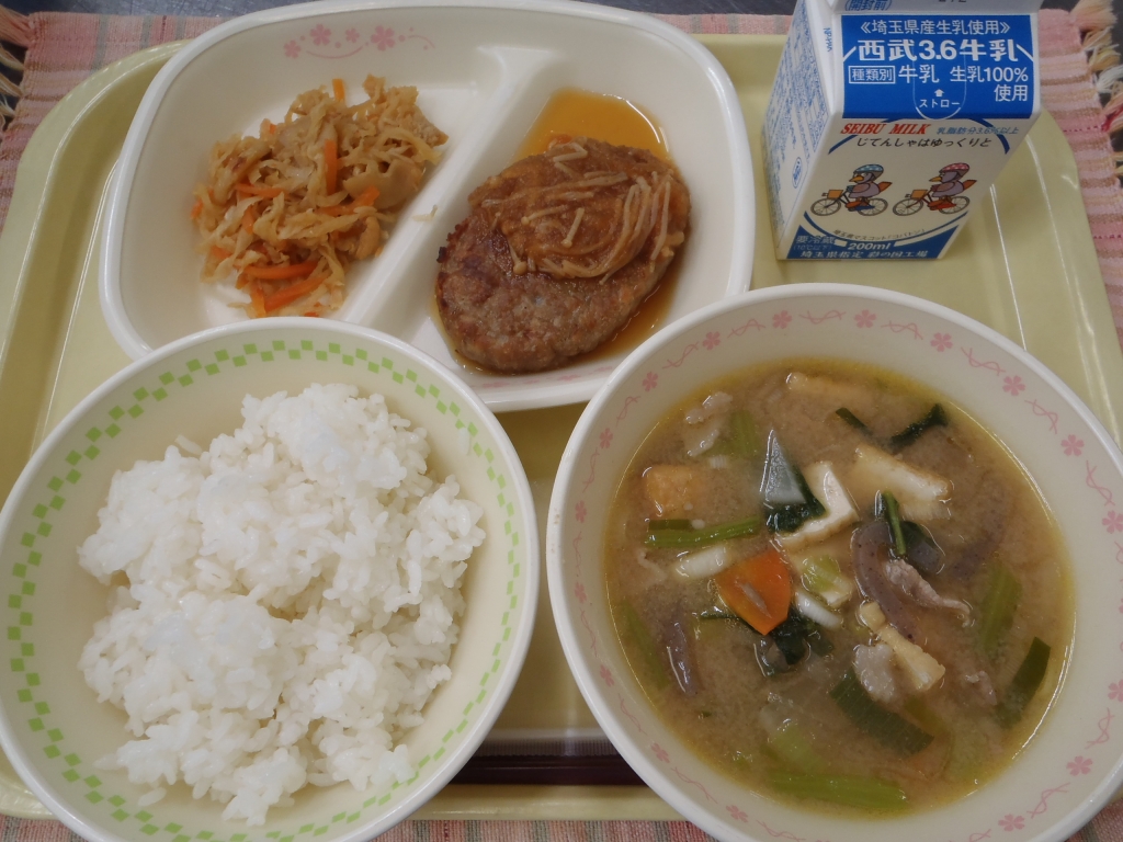 「和風おろしハンバーグ」のソースは玉ねぎと大根をすりおろしてソースに加えました。切干大根は唐辛子がピリッと効いて歯ごたえがある位に煮含めています。寒くなってきたので具沢山の豚汁がからだを温めてくれます。