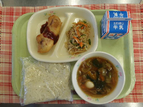 牛乳 うま煮ラーメン アメリカンドッグ 切り干し大根の和え物