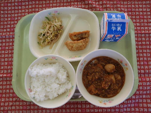 牛乳 ご飯 麻婆白菜 揚げ餃子 もやしのナムル エネルギー:859kcal たんぱく質:31.7g
