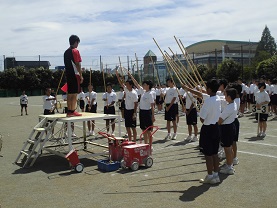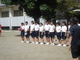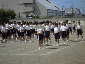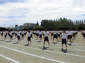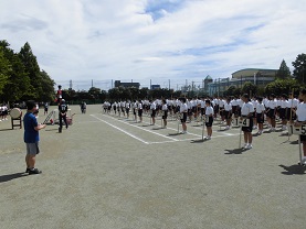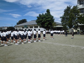 台風にも負けず、上柴中学校は今週の体育祭に向けて、開会式の全体練習をしました。急に暑くなったことと、朝の台風騒ぎで、少し生徒諸君は疲れていたようです。でも、それでも、ほとんどの生徒が声を張り上げて、頑張っていました。14日は今のところ、良い天候になりそうです。当日まで、あと6日、最後の仕上げ、頑張っていきましょう!